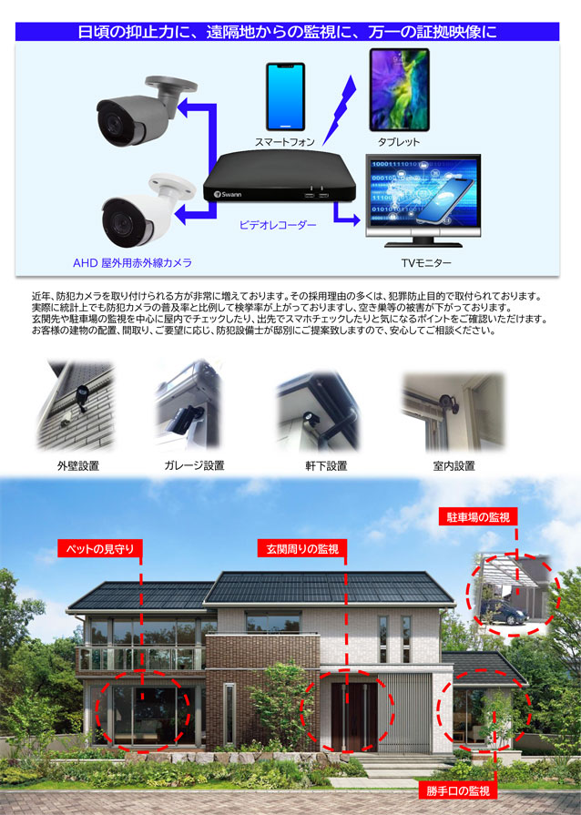 カメラとレコーダーの位置に応じて個別に提案させていただきます。